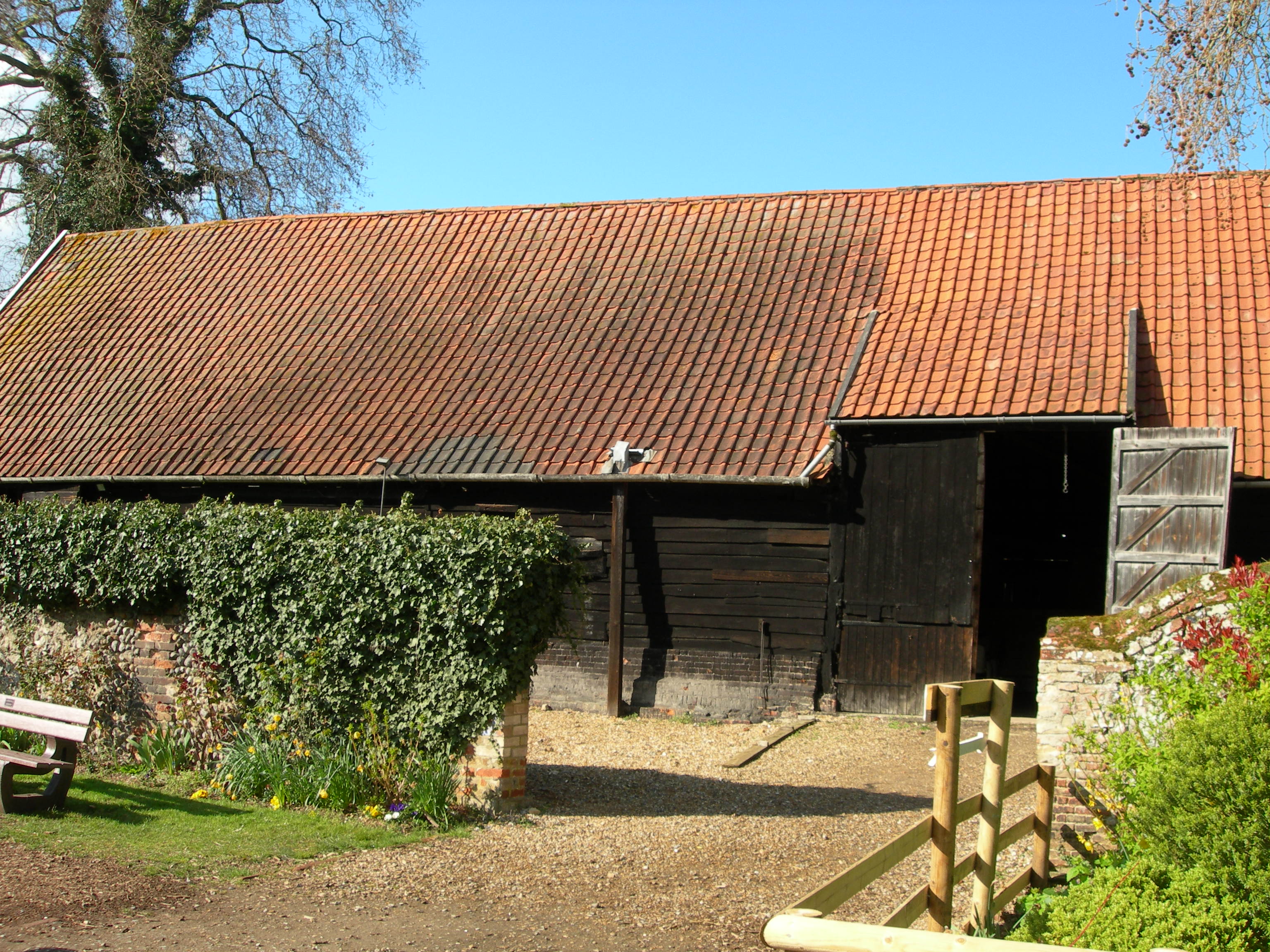 It was used to process and store the harvest from the estate. It has two threshing floors with large doors which enabled the unloading of wagons and created a draught to carry away the inedible chaff during threshing.